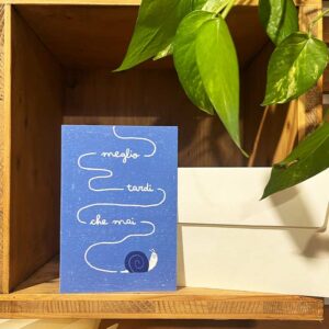 Cerchiamo di evadere tutti gli ordini in 2 o 3 giorni, ma ti consigliamo di ordinare sempre con un certo anticipo se devi fare un regalo.