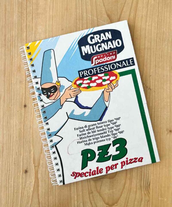 Ricettario in formato A5 stampato su carta riciclata, certificata FSC e rilegata con spirale metallica. Interno stampato a righe con spazio dedicato per procedimento, ingredienti e procedimento delle vostre ricette. Cover realizzate con riviste vintage o materiale di recupero: per questo articolo abbiamo riutilizzato una confezione di farina.
